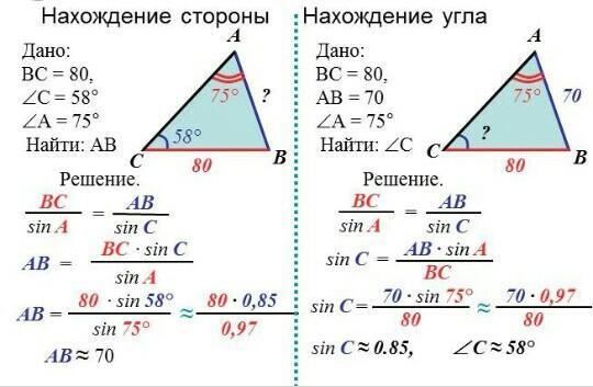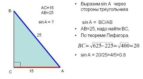 Как решать задачи с синусами и косинусами по геометрии покажите мне пример с простым объяснением каждого действия.