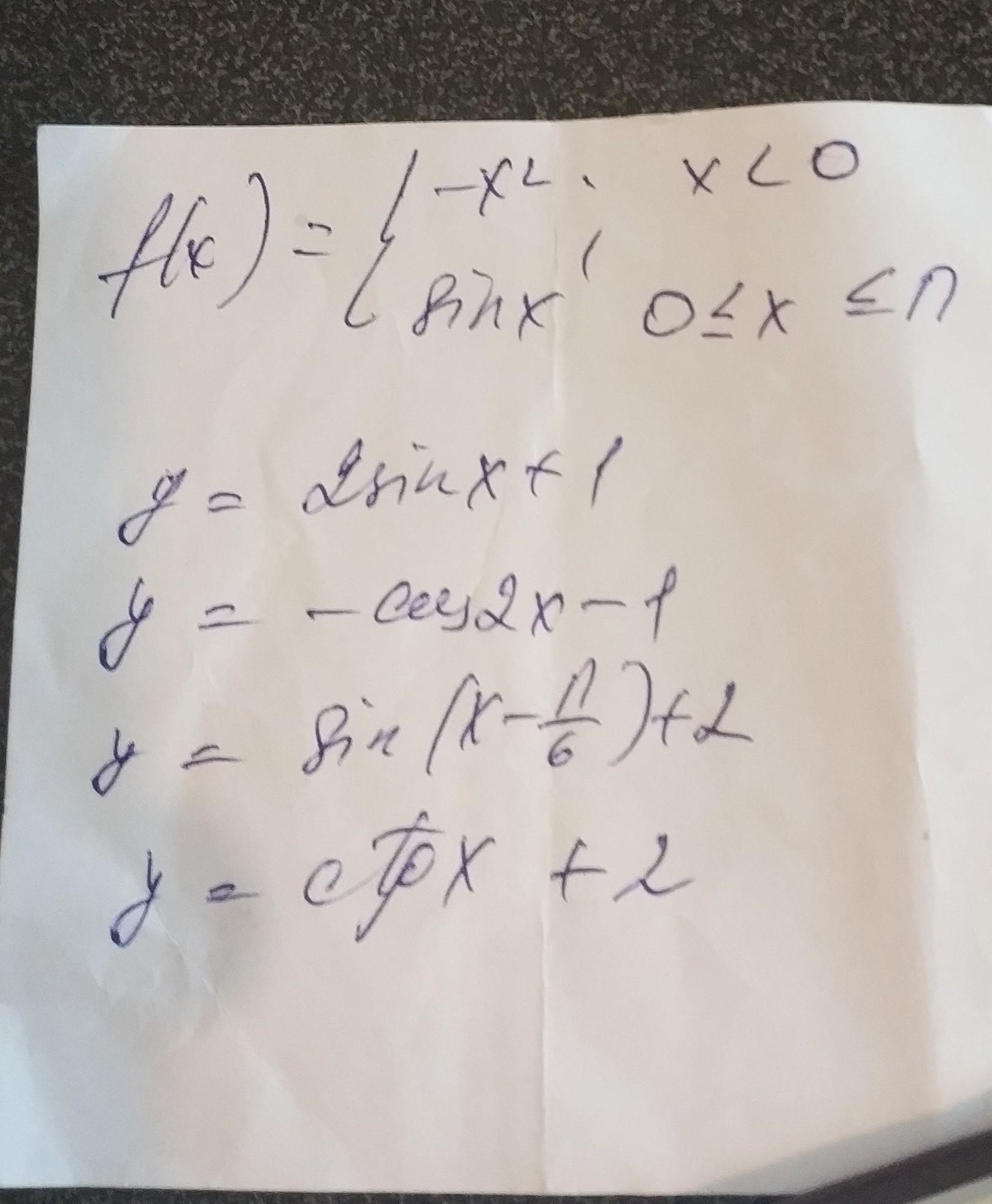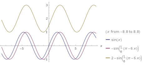 Четвертое. Рисуем y=sinx, и двигаем это дело на π/6 вправо и 2 вверх.