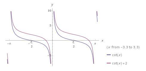 Пятое. Рисуем y=ctgx и двигаем на 2 вверх.