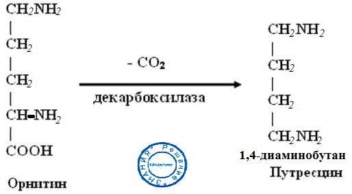 Относится с кадаверином к трупным ядам, в организме образуется в толстом кишечнике в результате реакции декарбоксилирования аминокислоты орнитина, обезвреживается в печени с помощью серной и глюконовой кислот, имеет специфический запах.
