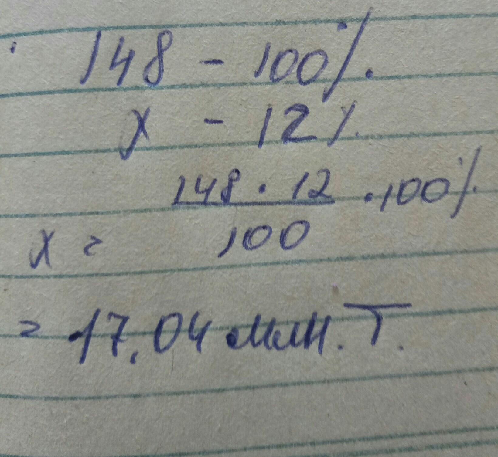 х = 148 * 112: 100 = 16 576 (млн.т)