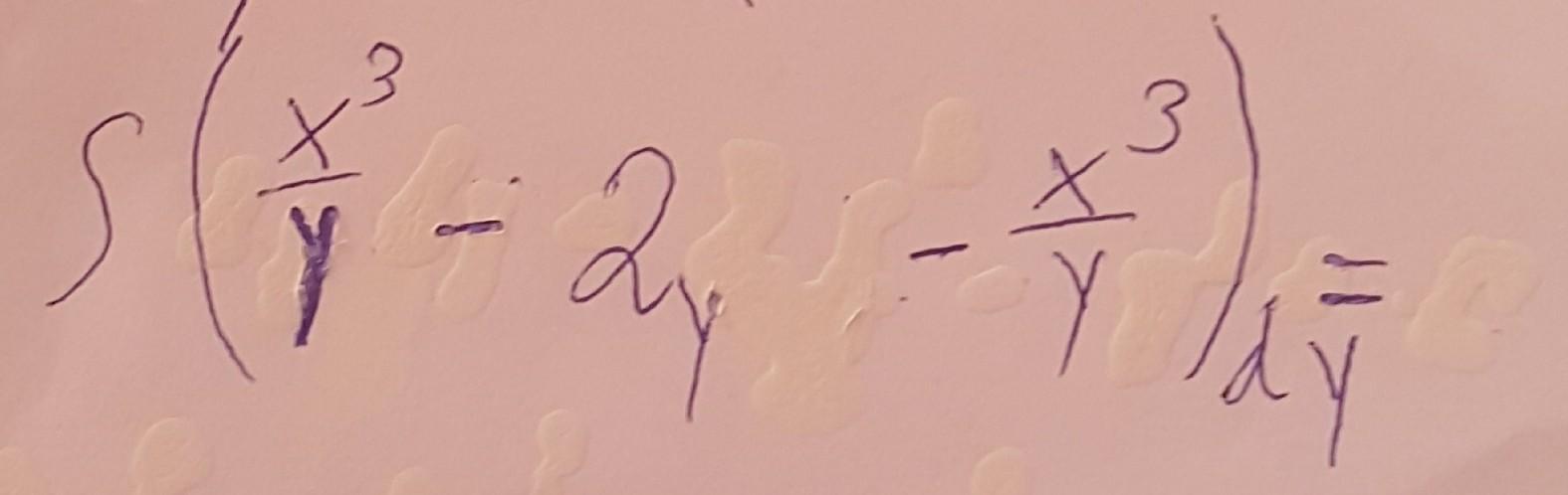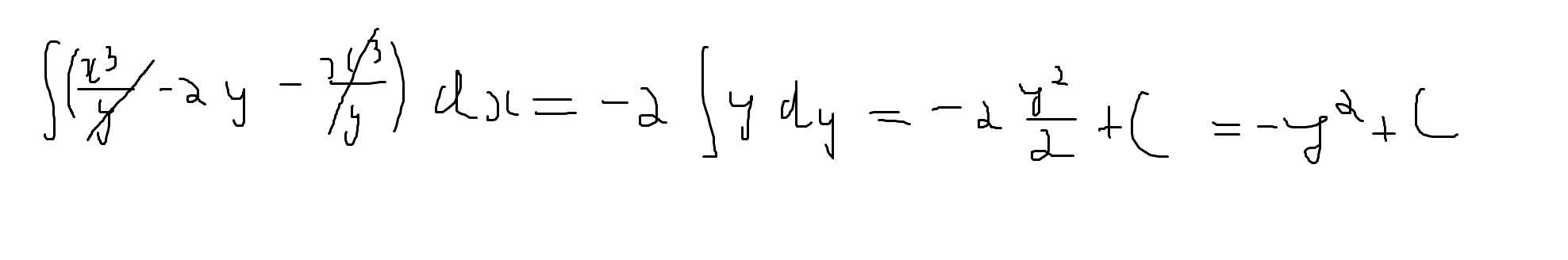 ∫(х³/у-2у-х³/у)dу=-∫(2уdу)=-2∫уdу=-2у²/2+с=-у²+с, где с-const