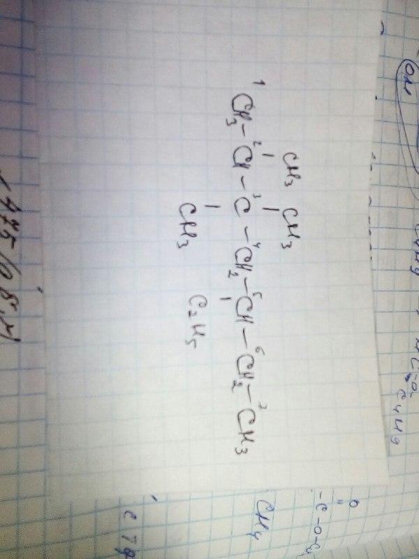 Пишем в строчку 7 Карбонов(гептан), потом нумеруем Карбоны. Расставляем метил и этил под номером, который написан в условии.