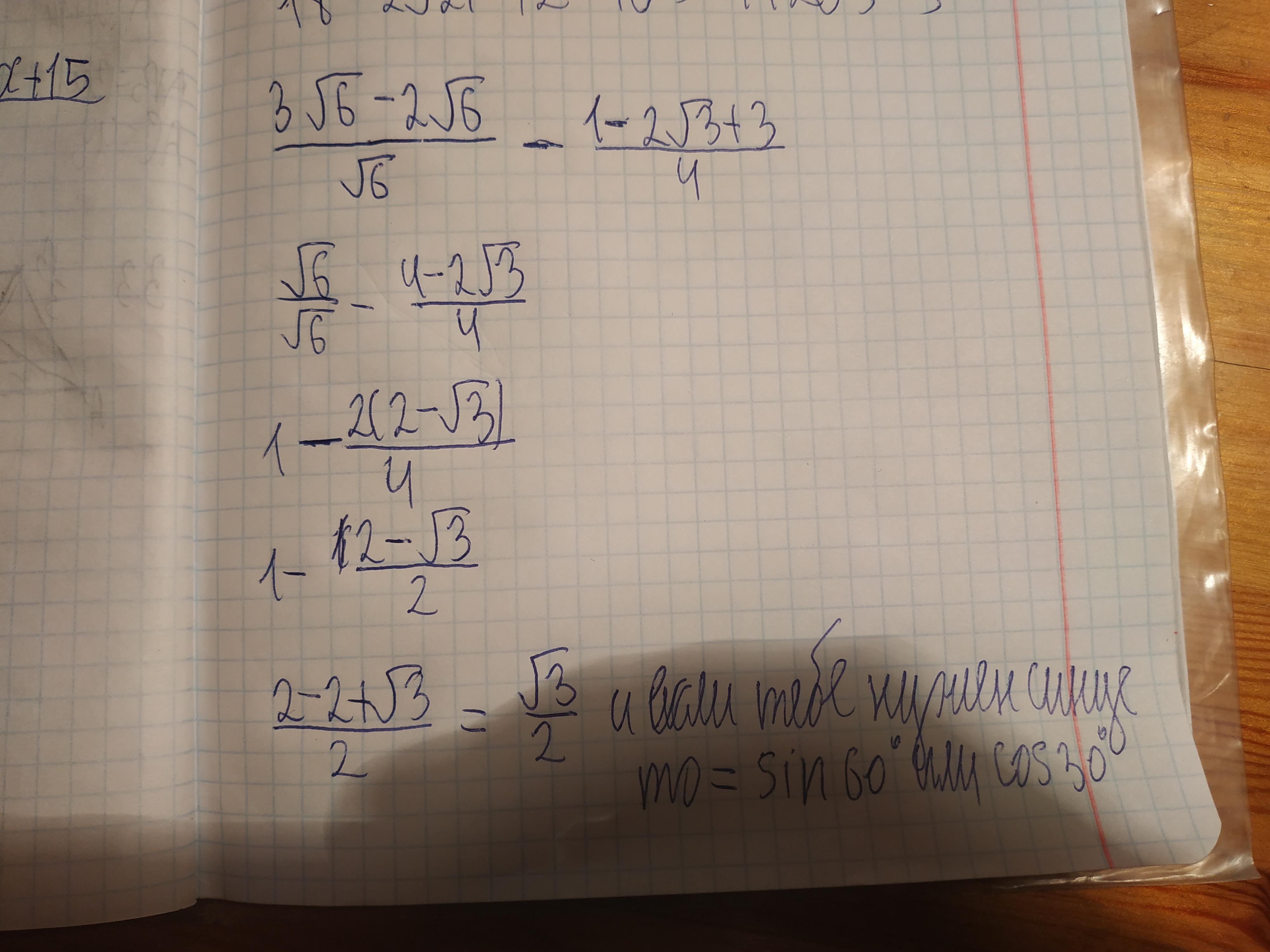 5) 1-(1-√3/2)=1-1+√3/2=√3/2.