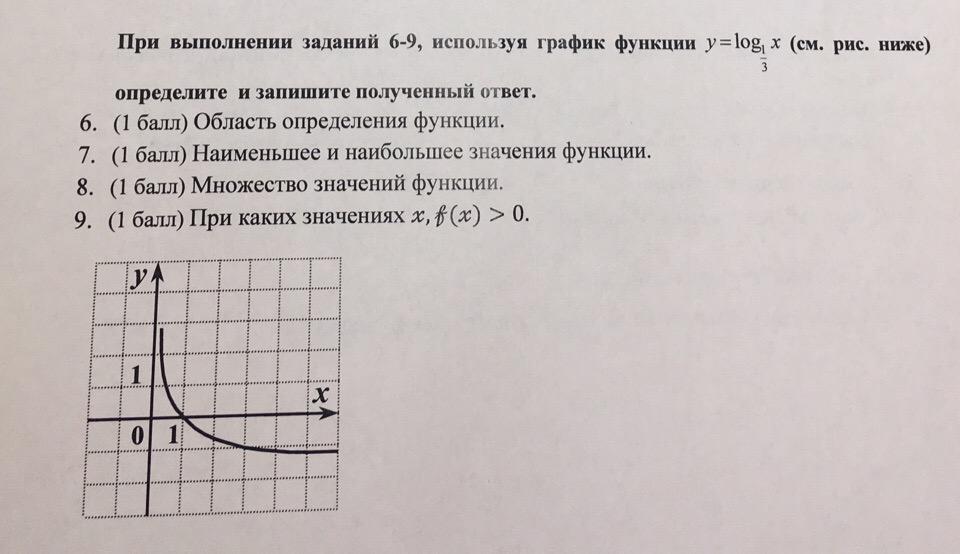 9. Логарифмическая функция убывает при 0<a<1 и при этом имеет положительные значения: f(0; 1) > 0.