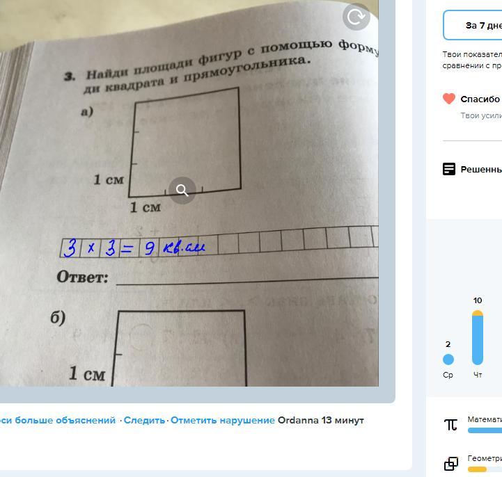 Найди Площадь фигур с помощью формул площади квадрата и прямоугольника