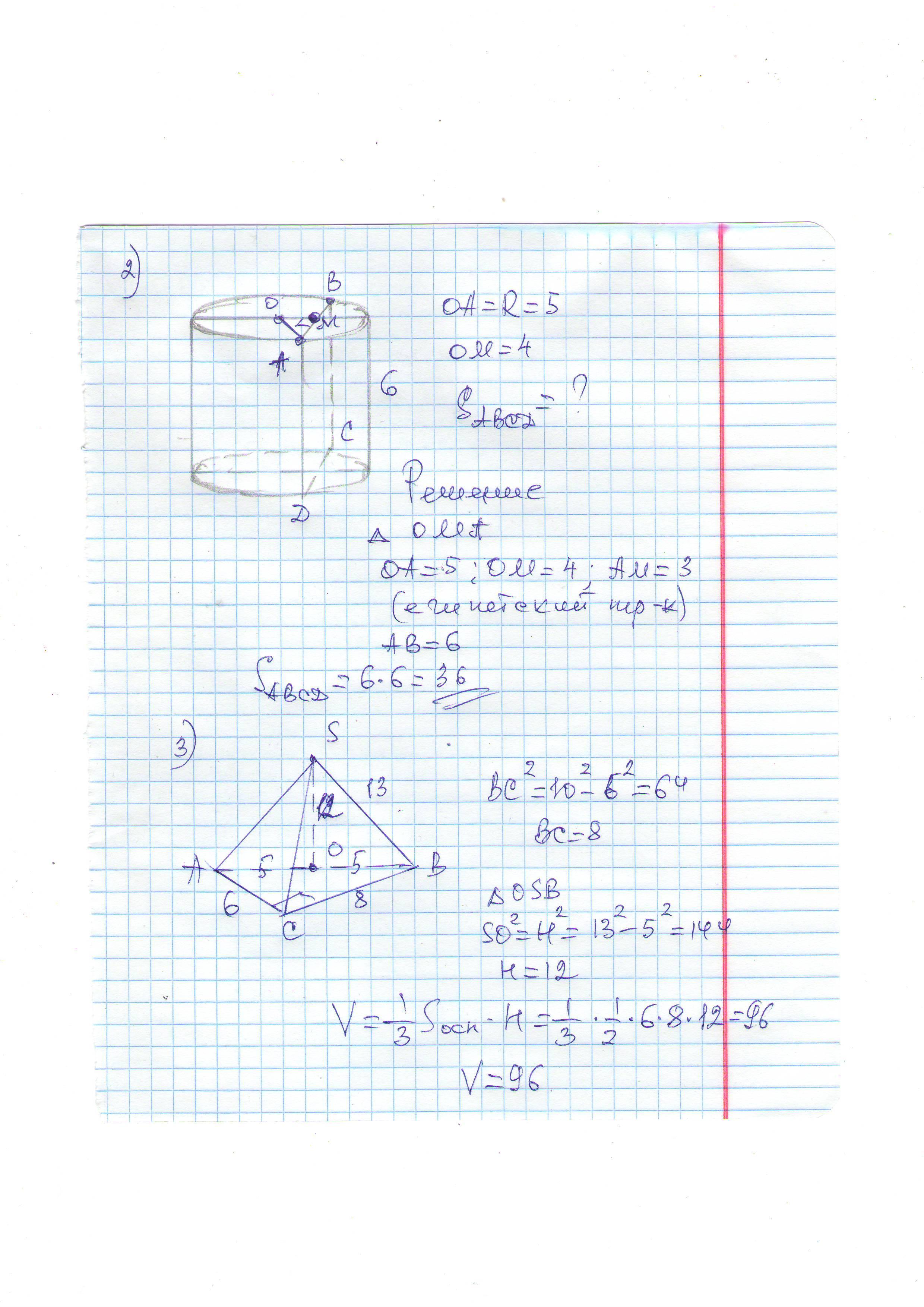 2) Сечение цилиндра - прямоугольник. Его площадь = произведению длины на ширину. Решение смотри в приложении.