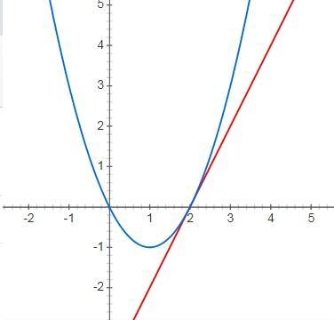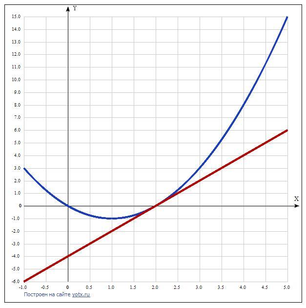 Составить уравнение касательной к графику функции y=x^2-2x, в точке с абсциссой x0=2.выполнить рисунок .