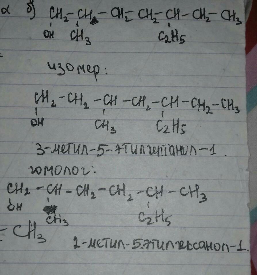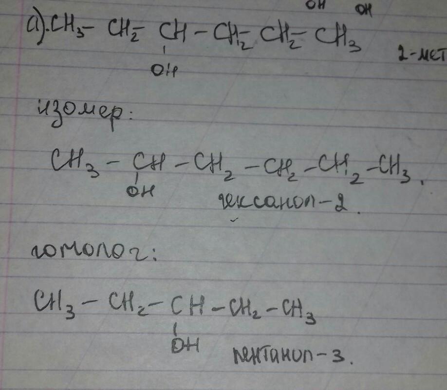 Составьте формулы одного изомера и одного гомолога для указанных веществ: а) гексанол-3; б) 2-метил 5-этилгептанол-1