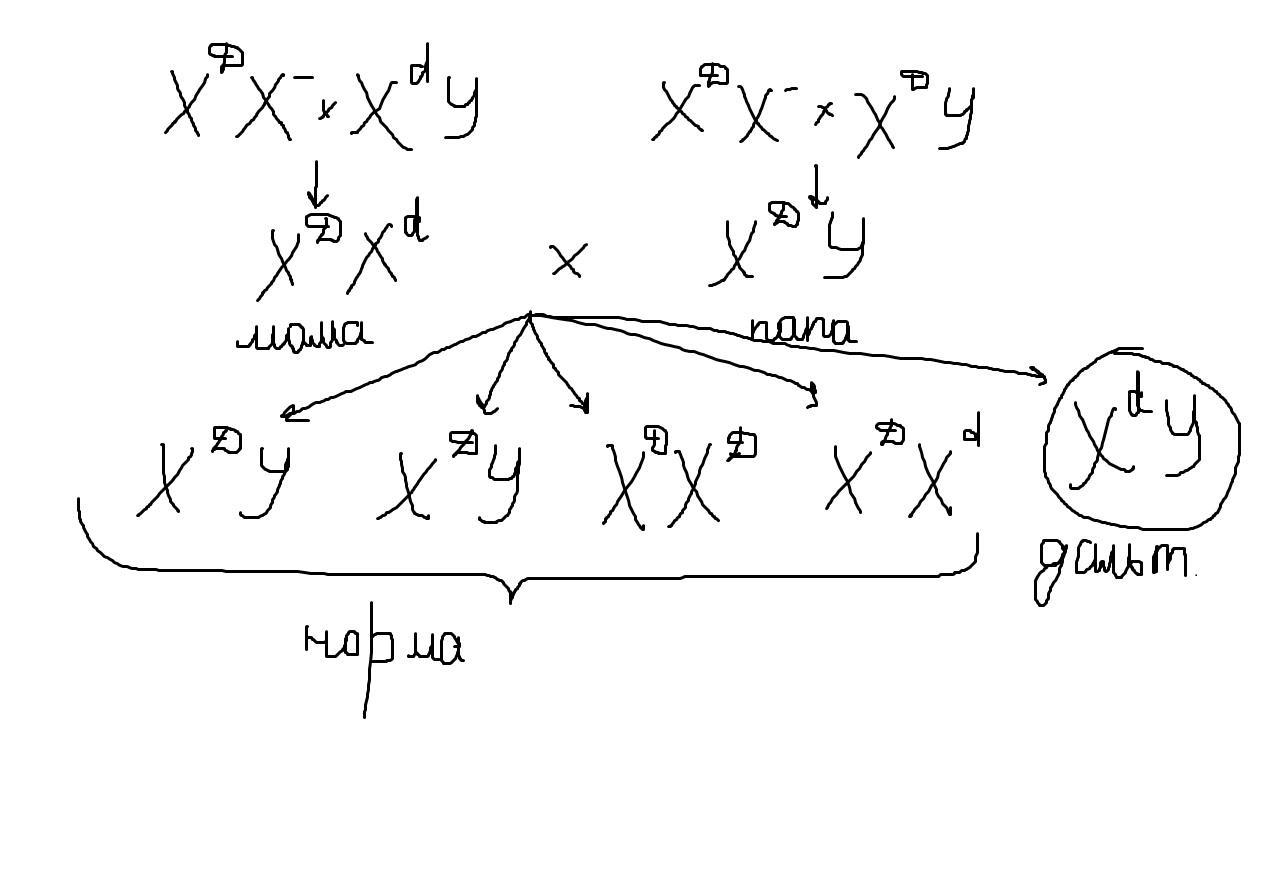 У супружеской пары, в которой оба супруга обладали нормальным зрением, родились: 2 мальчика и 2 девочки с нормальным зрением и сын-дальтоник. Определите вероятные генотипы всех детей, родителей,а также возможные генотипы дедушек этих детей.