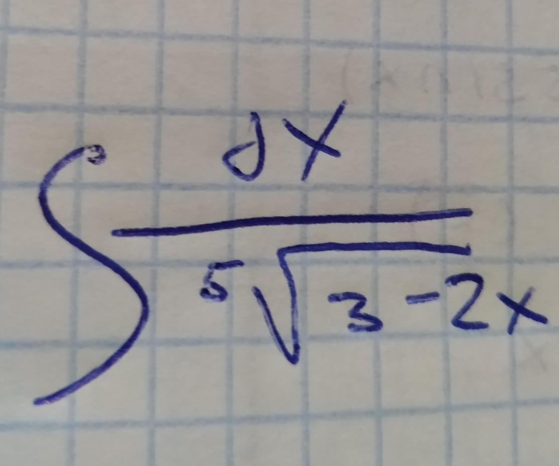 Преобразуем подынтегральную функцию 1/((3-2х)¹/⁵)=(3-2х)⁻¹/⁵, и с помощью табличного интеграла ∫((ах+b)ⁿ)dx=((ax+b)ⁿ⁺¹)/(a*(n+1))+с, где в нашем случае a=-2; b=3; n=-1/5; с-const;