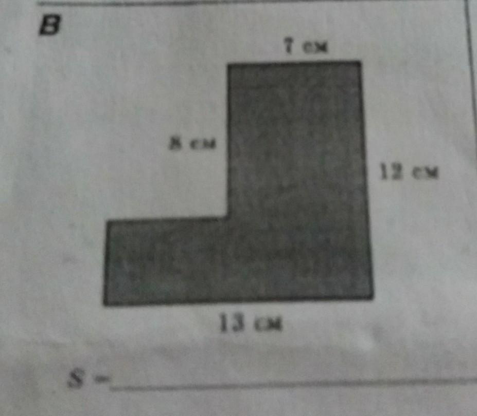 1. Делим на прямоугольник со сторонами 8 и 7(площадь будет 8*7= 56), и на прямоугольник со сторонами 12-8 и 13 (площадь будет 4*13=52). Так общая площадь равна 52 + 56=108