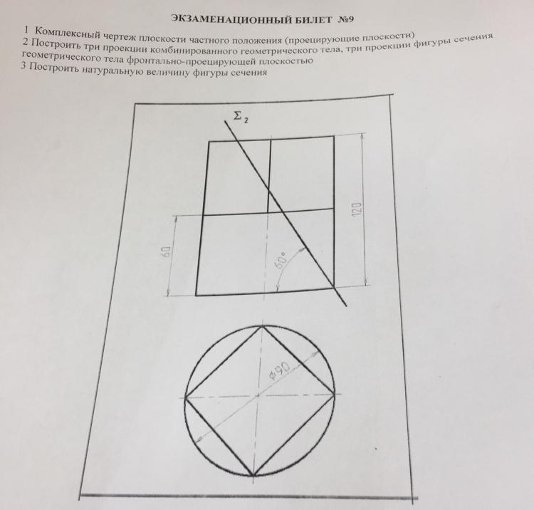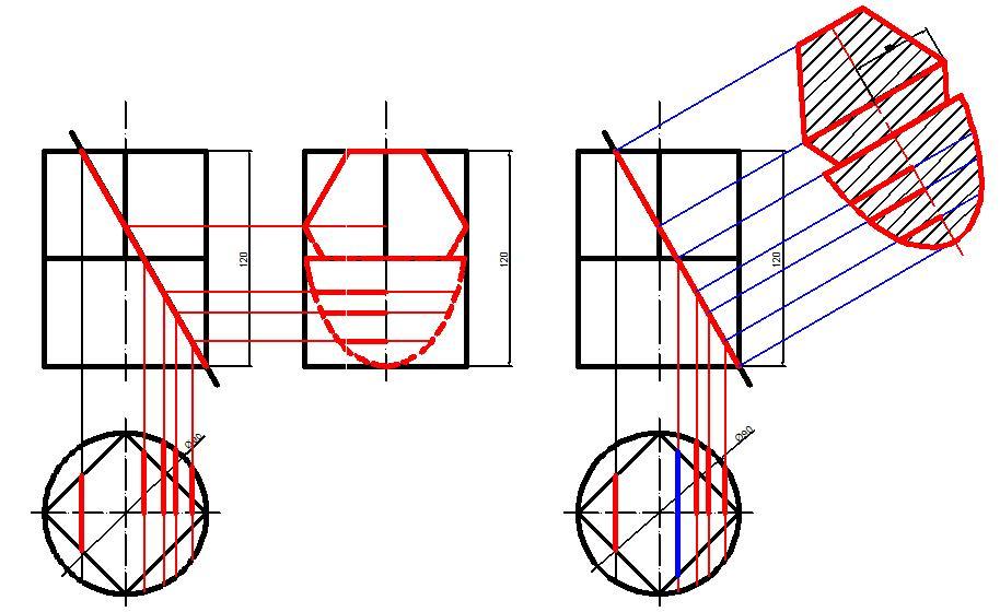 В ответе дано построение сечения в натуральную величину и третий вид.