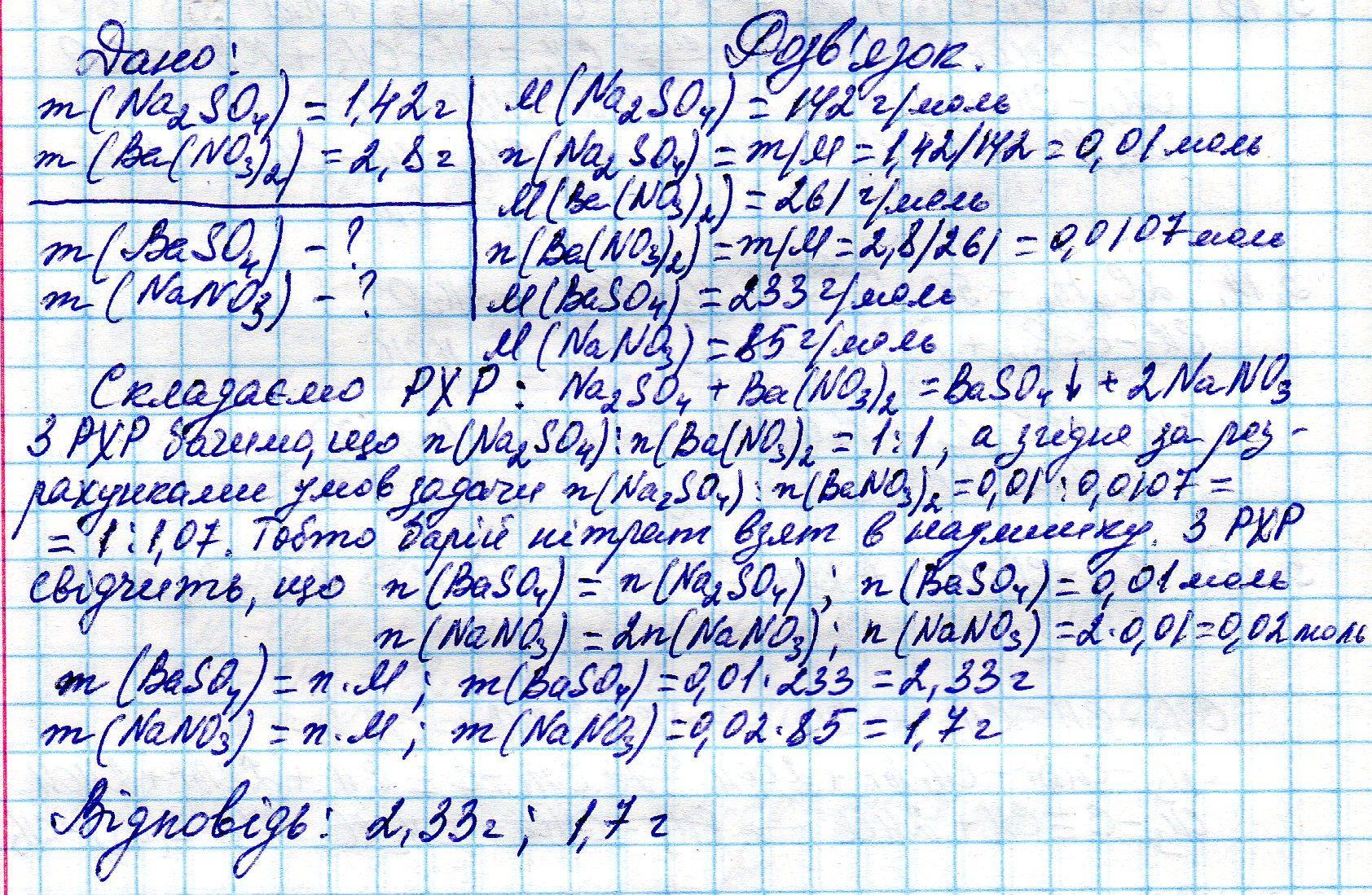 Получили сульфат бария и нитрат натрия. Решение на украинском языке в приложении.