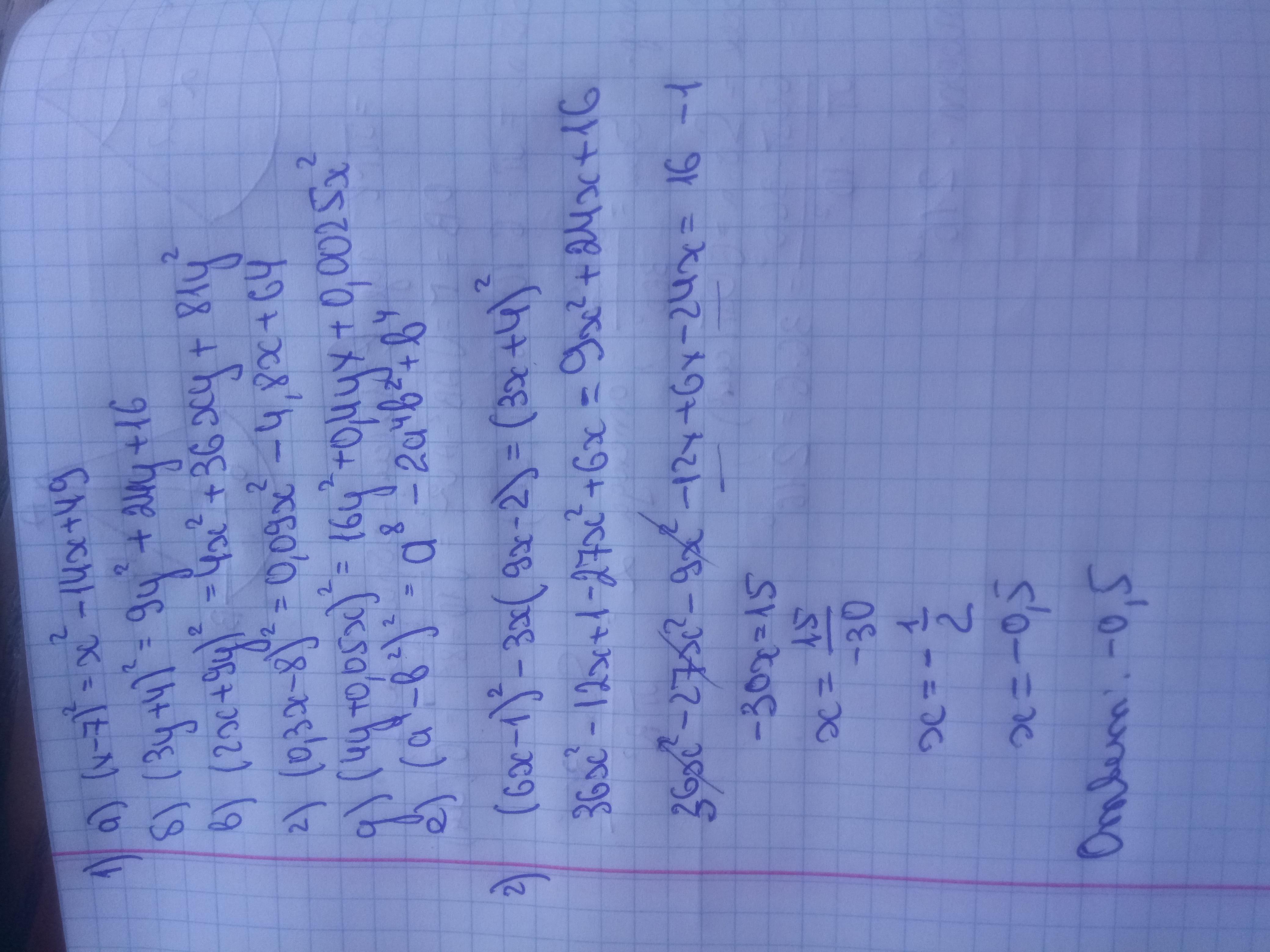 1)первое число в квадрате минус удвоенное произведение первое на второе и плюс второе число в квадрате