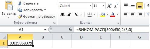 Здесь n=450 - количество испытаний, положительных испытаний, которых должно быть ровно к=300. - вероятность появления без зазубрины.
