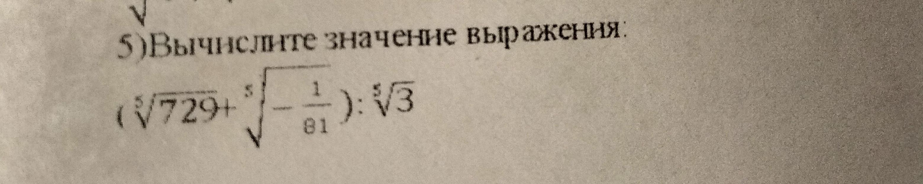 б) Если корень пятой степени из числа (-1/81)=(-1/(3⁴))разделить на корень пятой степени из трех, то получим