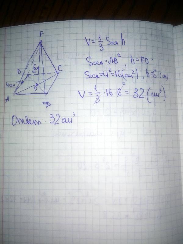 основания равна 4 см, а высота пирамиды равна 6 см.