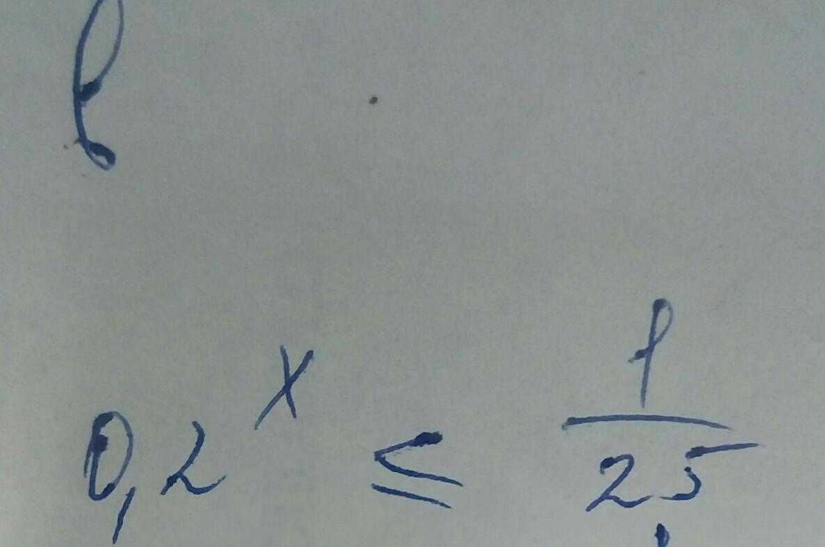 Перепишем так: (1/5)^x=<(1/5)^2 (одна пята в степени х меньше либо равна одной пятой в квадрате)