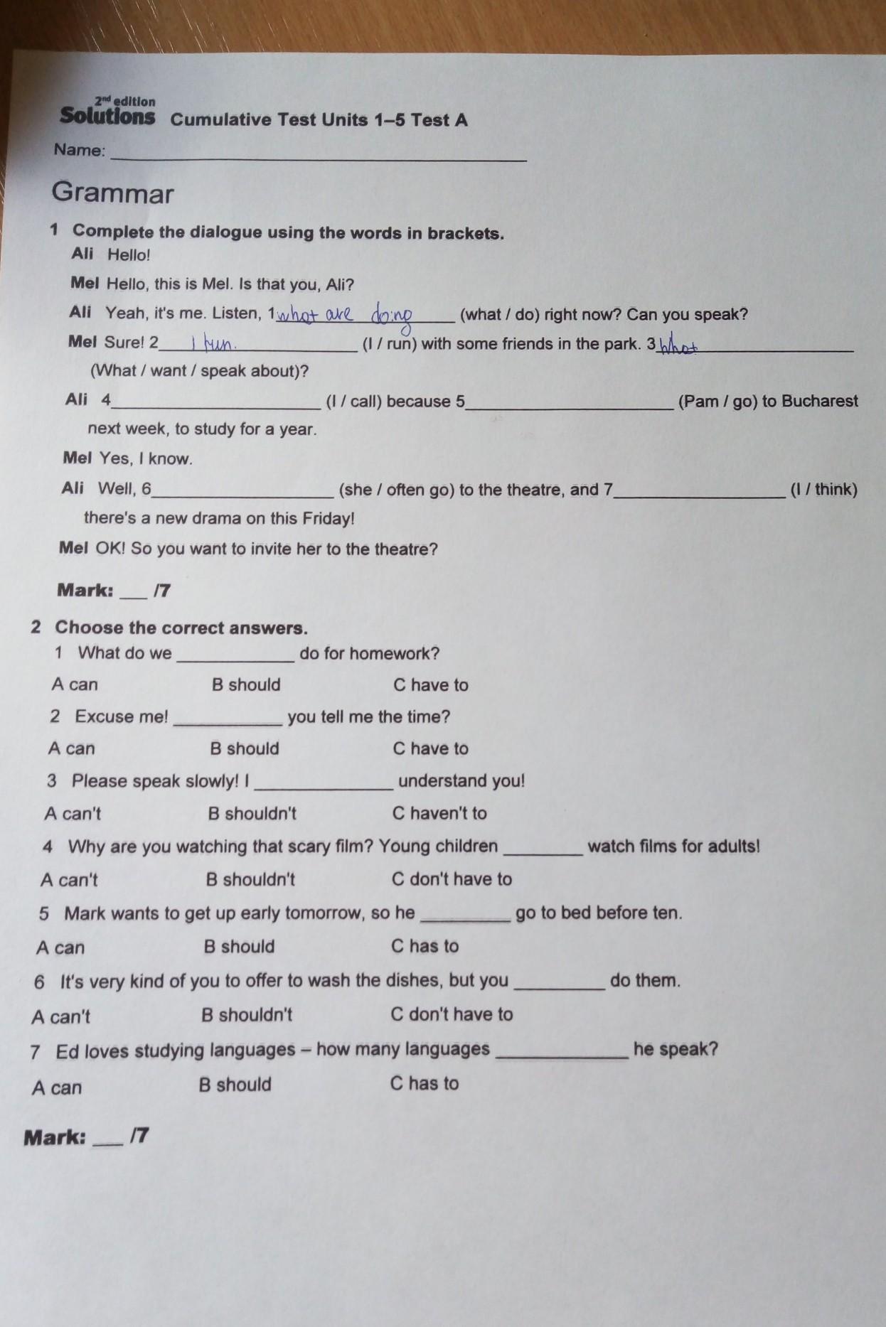 1.) 1.what are you doing 2.was running 3.what do you want to speak about? 4.I have called you 5.Pam are going 6.she often go 7.I think