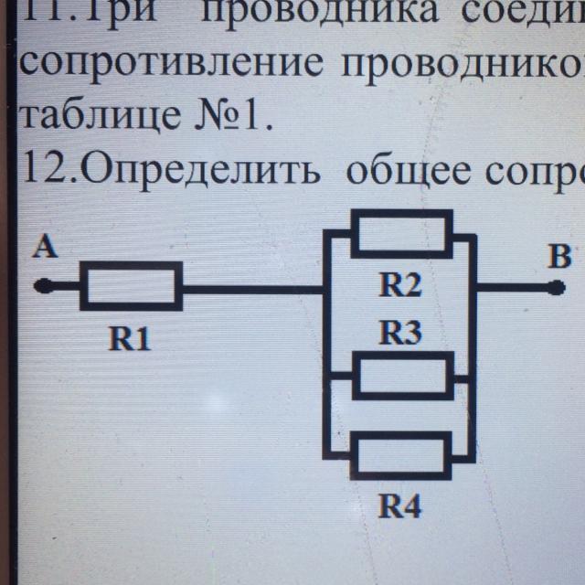 Определить общее сопротивление и силу тока в каждом проводнике. напряжение U=120