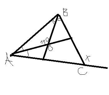 угол образованный биссектрисами углов А и В треугольника АВС равен 110 градусов. Найти внешний угол при вершине С