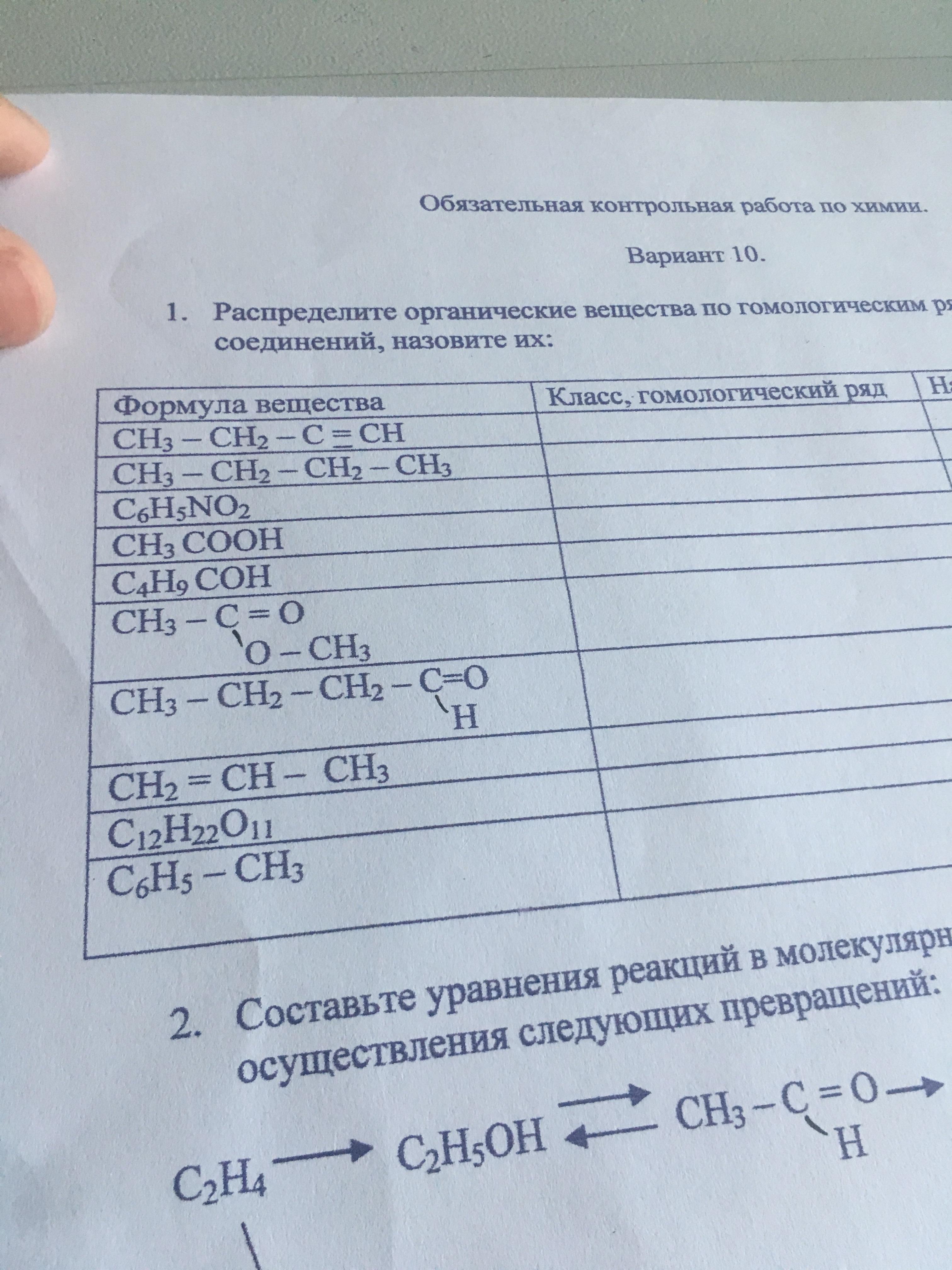 Распределите органические вещества по гомологическим рядам и классам соедините,назовите их