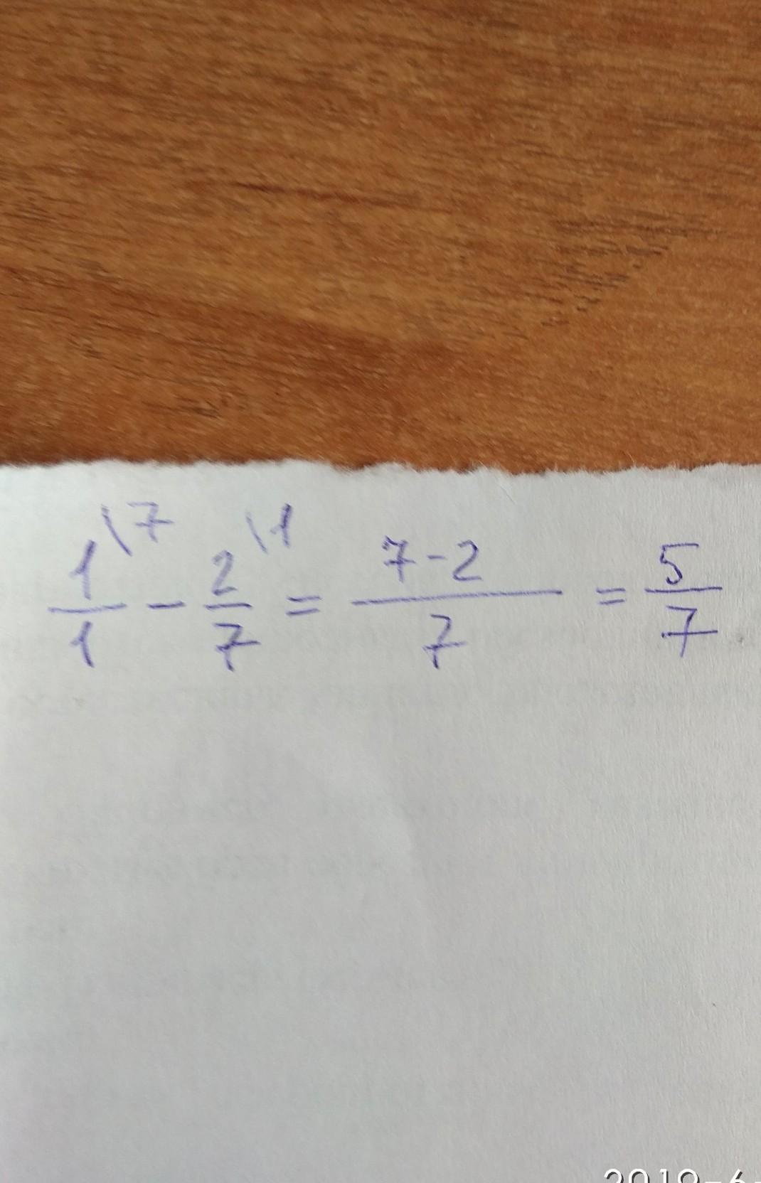 1=2/2=3/3=4/4 ... НО нам подойдет именно 7/7, почему? Да потому что число которое от 1 отнимают со знаменателем 7, поэтому