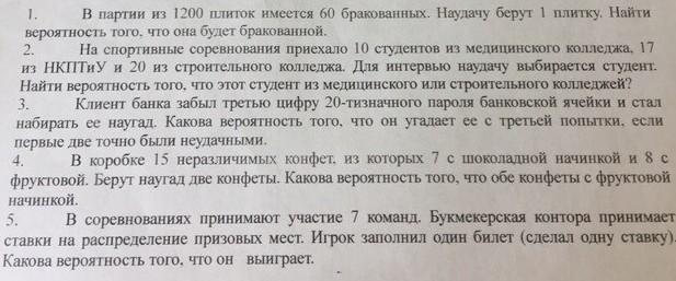 5. 1/5040 = 2*10-4 (если на полную тройку призёров) и 1/7 = 0.14 (просто на победителя)