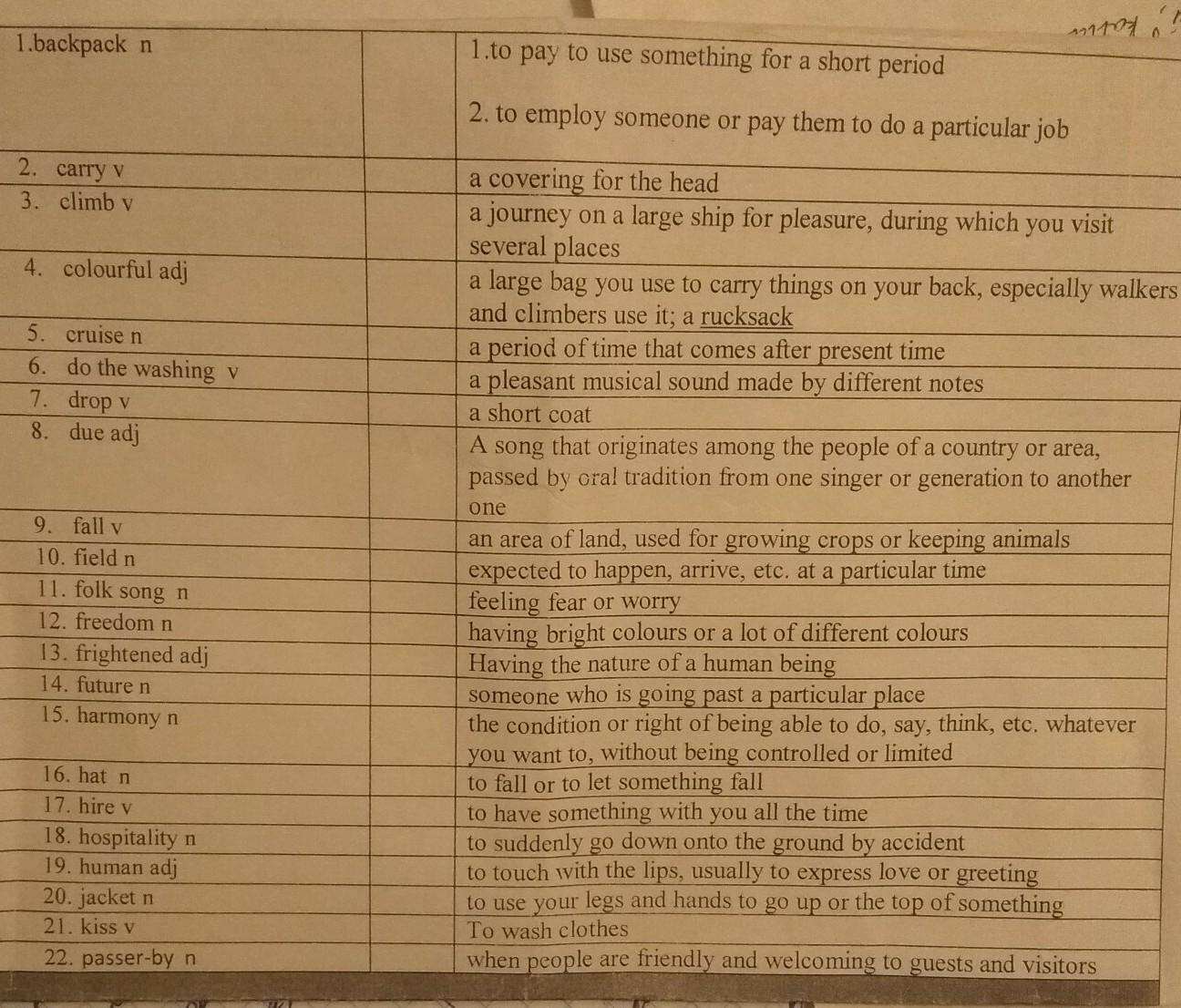 11. folk song (народная песня)- a song that originates among the people of a country or area, passed by oral tradition from one singer or generation to another one