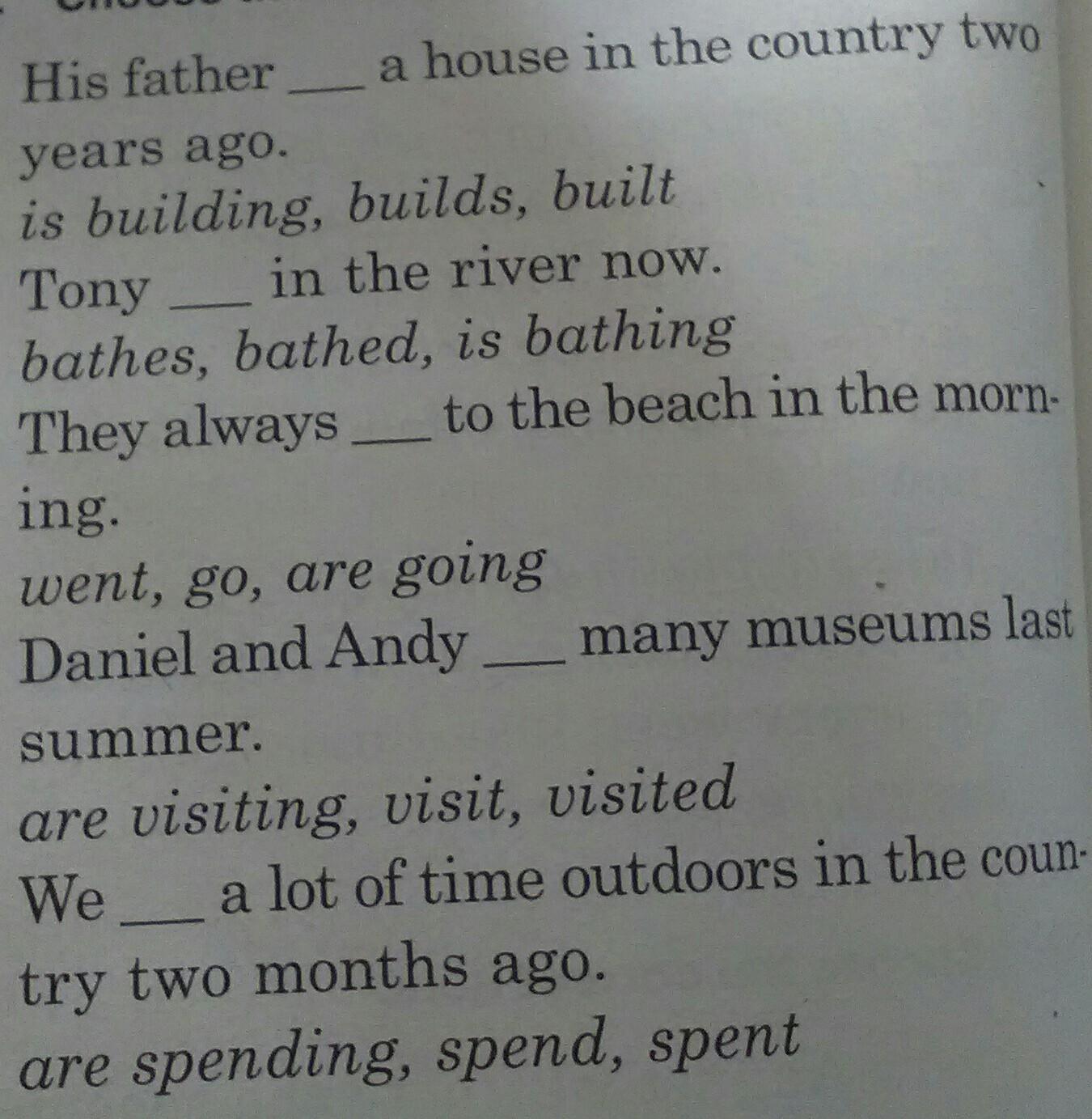 1)Built 2) is bathing 3) go 4) visit 5) spent
