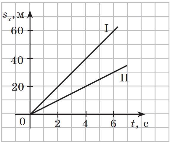 Возьмем из графика время, например с. Тогда путь, пройденный телами, составляют
