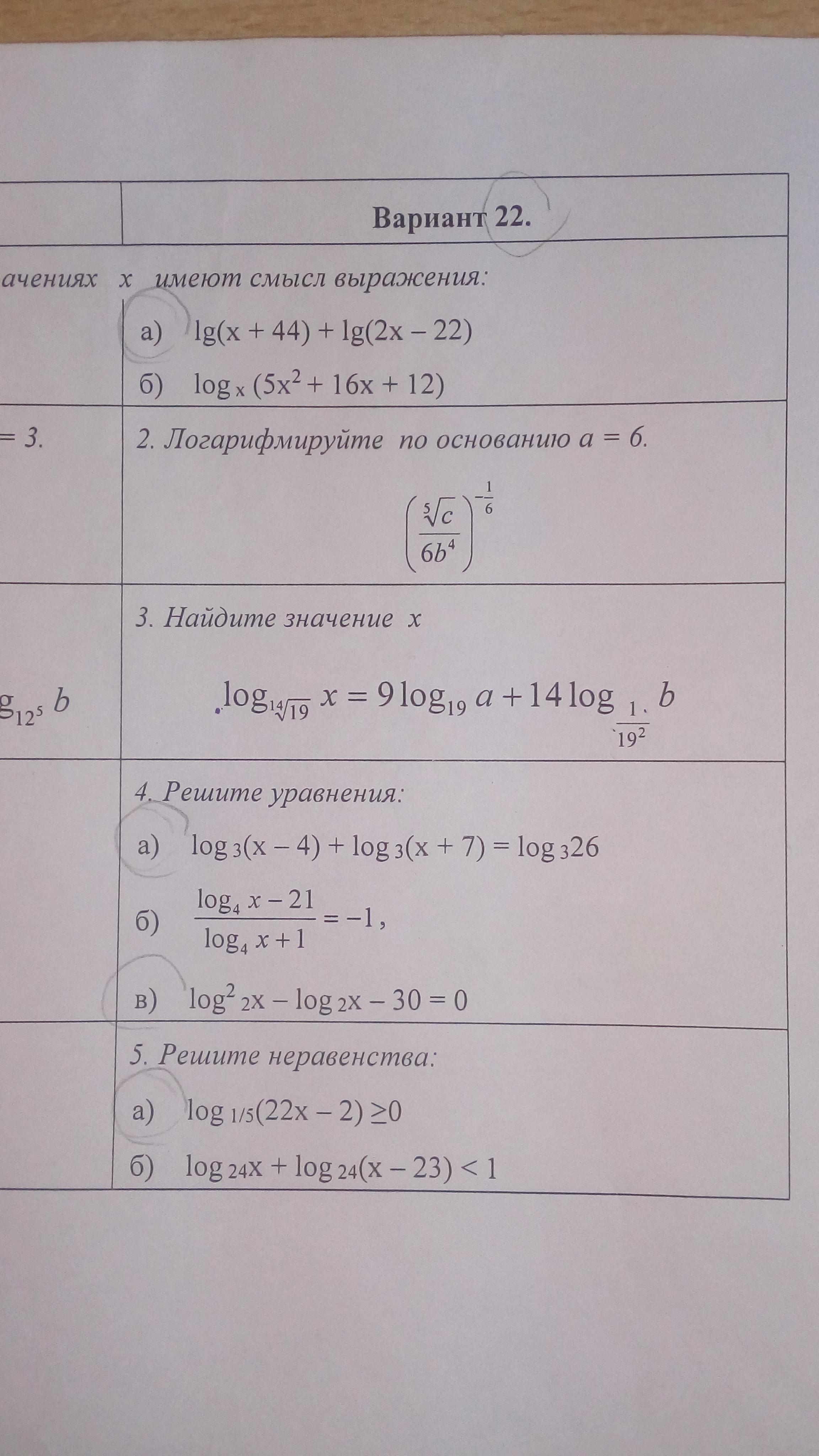 4в) ㏒²₂х-㏒₂х-30=0; ОДЗ уравнения х∈(0;+∞) Пусть ㏒₂х=у, тогда у²-у-30=0; по теореме, обр. теореме Виета, у₁=-5; у₂=6 тогда ㏒₂х=-5; х=2⁻⁵; х=1/32 -входит в ОДЗ, корень.