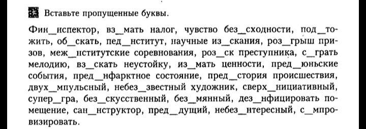 Фининспектор, взимать налог, чувство безысходности, подытожить, обыскать, пединститут , научные изыскания , розыгрыш призов, межинститутские соревнования, розыск,(дальше буду просто вставлять буквы в слова) сыграть, взыскать изымать предиюньские предынфарктное предыстория двухимпульсный небезызвестный сверхинициативный суперигра безыскуственный безымянный дезинформировать санинструктор предыдущий небезынтересный сымпровизировать