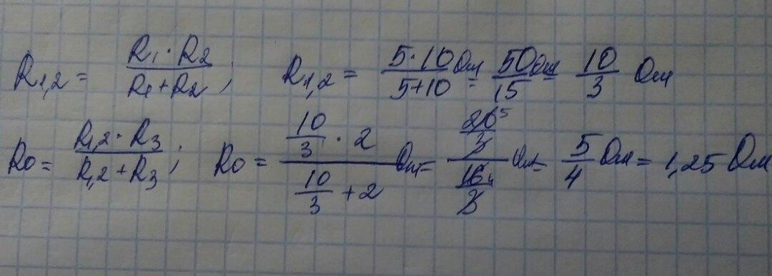я разобрался и твой ответ не верен. тк формула 1/r1+1/r2+1/r3 итого 0.2+0.1+0.5=0.8 если не прав прошу объяснить неучу.