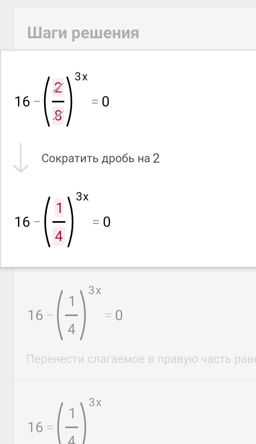 Потому что от 16 отнимаете дробь (2/8)³ˣ, Вы сокращаете дробь на два, т.е. и 2, и 8 делите на два. А при чем там 16? Она входит в состав дроби, которую сокращали? Нет. Потому и не делите на два 16.