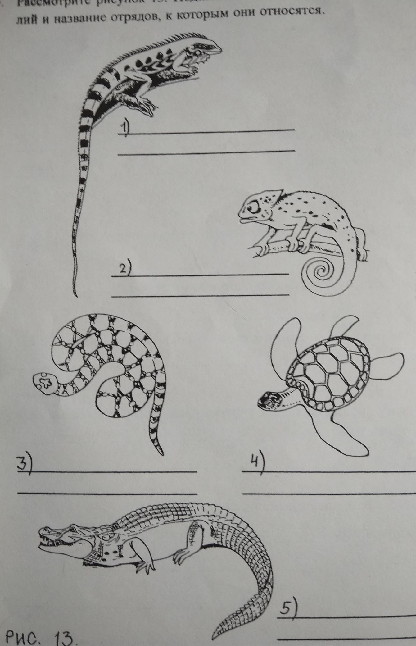 Рассмотрите рисунок 13. Подпишите названия изображенных ретилий