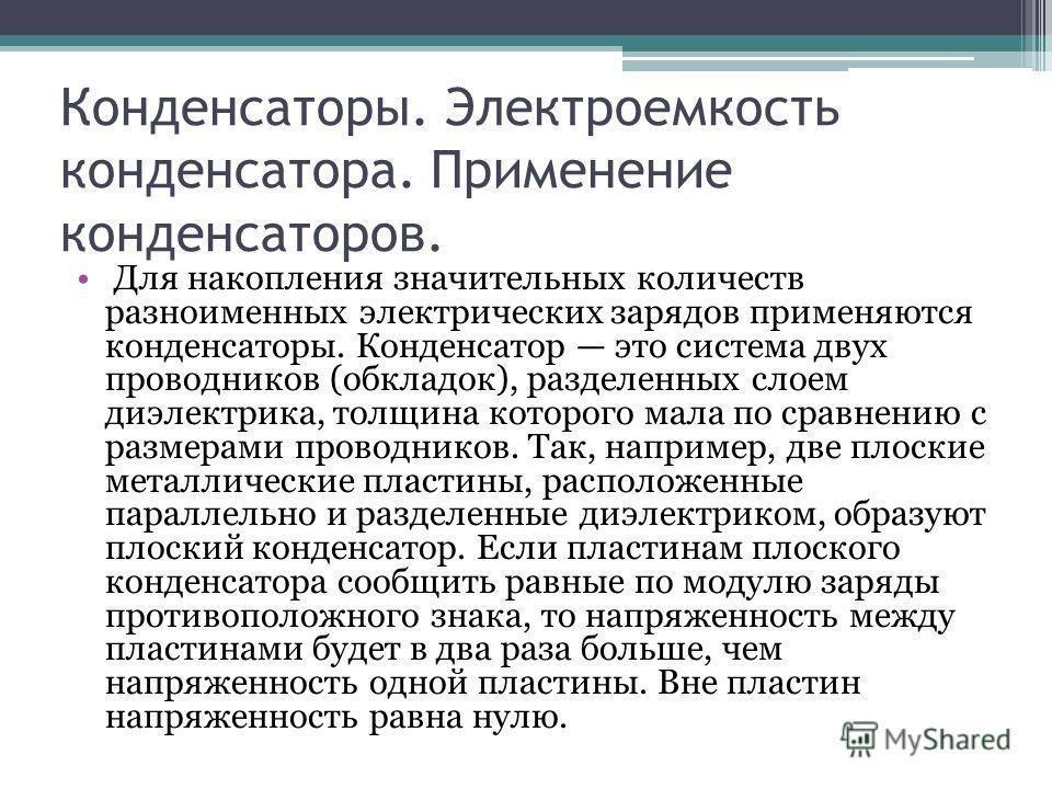 Также бывают конденсаторы постоянной и переменной электроёмкости.