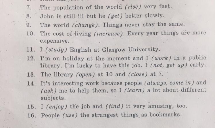 Употребите Present Simple или Present Continuous в данных примерах.