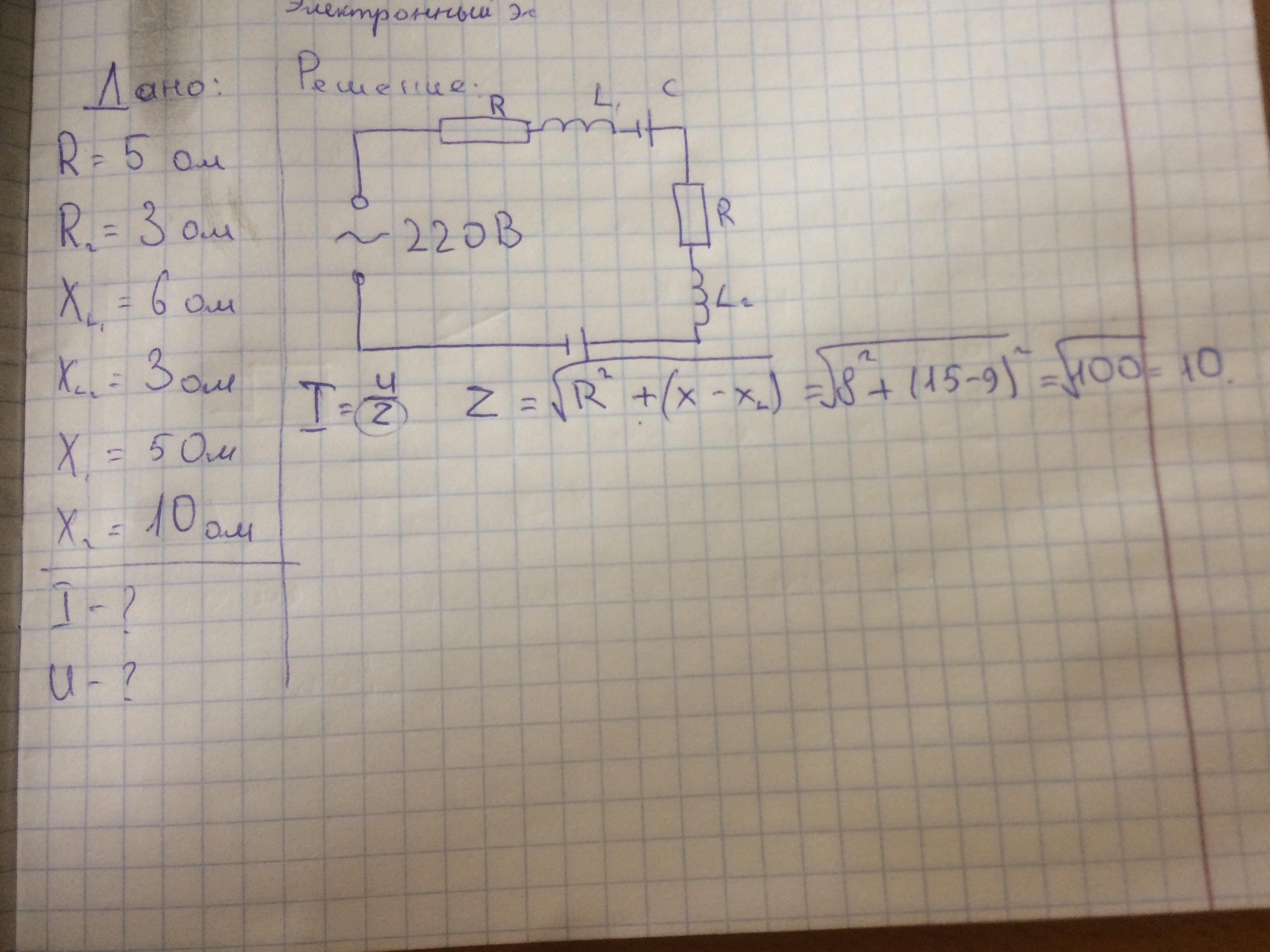 Ur1=I*R1=120B, Ur2=66B, Uл1=I*Xл1=132В, Uл2=66В, Uc1=120B, Uc2=220B