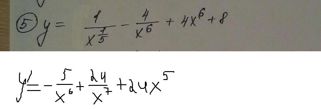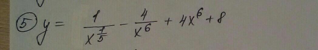 y'=-1/5 *x*(-6/5) -4*(-6)*x^(-7) + 4*6*x^5 = -1/5 *x*(-6/5) + 24*x^(-7) + 24*x^5