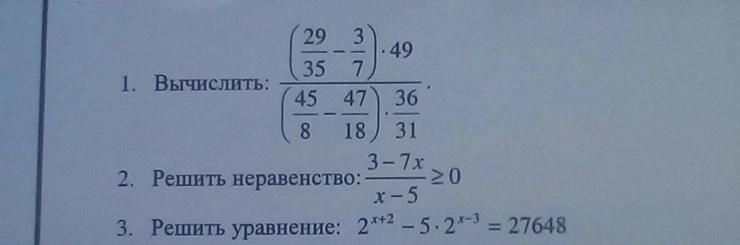 Нас интересуют числа меньшие, чем 3/7, тогда 5 в нашу область определения не попадает. Ответ: (-∞ ; 3/7].