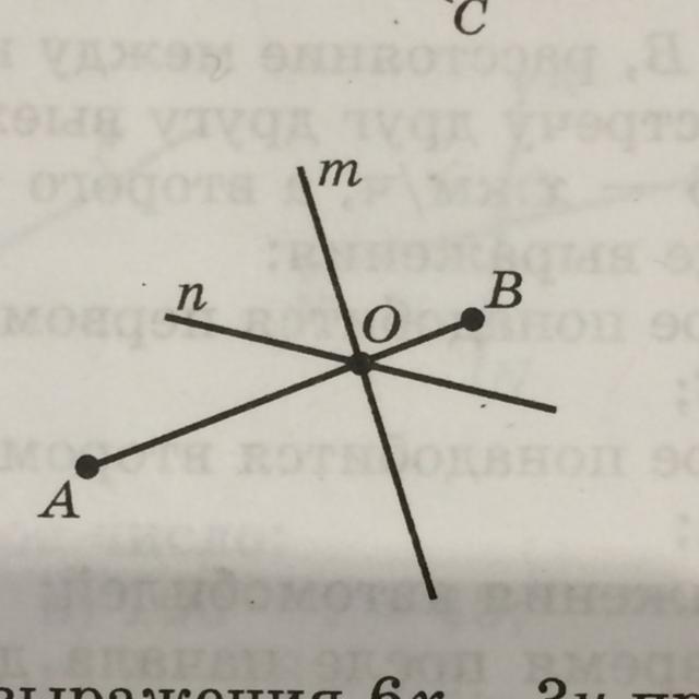 через отрезок АВ проходят два луча n и m, которые пересекаются в точке O