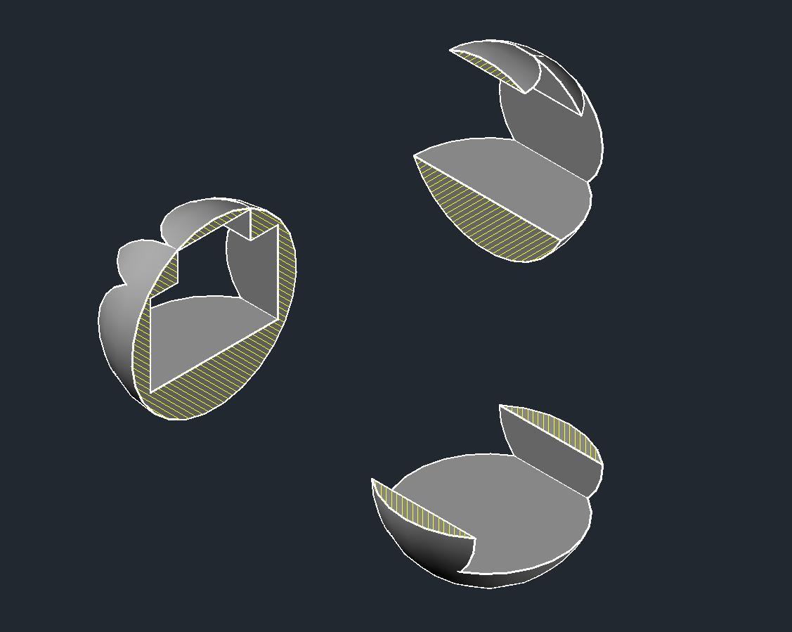 Фронтальный, горизонтальный и профильный разрезы, выполнены относительно центра сферы.