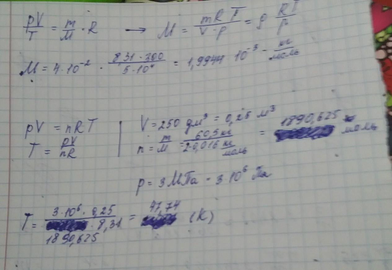 Какова температура кислорода в баллоне если давление газа 3МПА объем 250л масса равна 60.5 кг ? (кислород молекулярный)