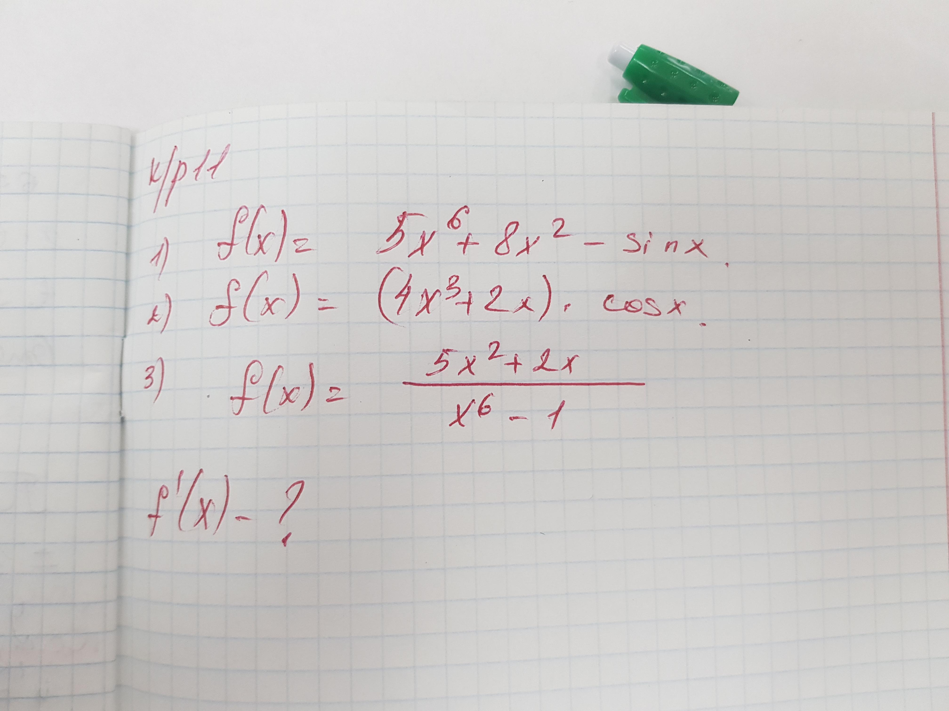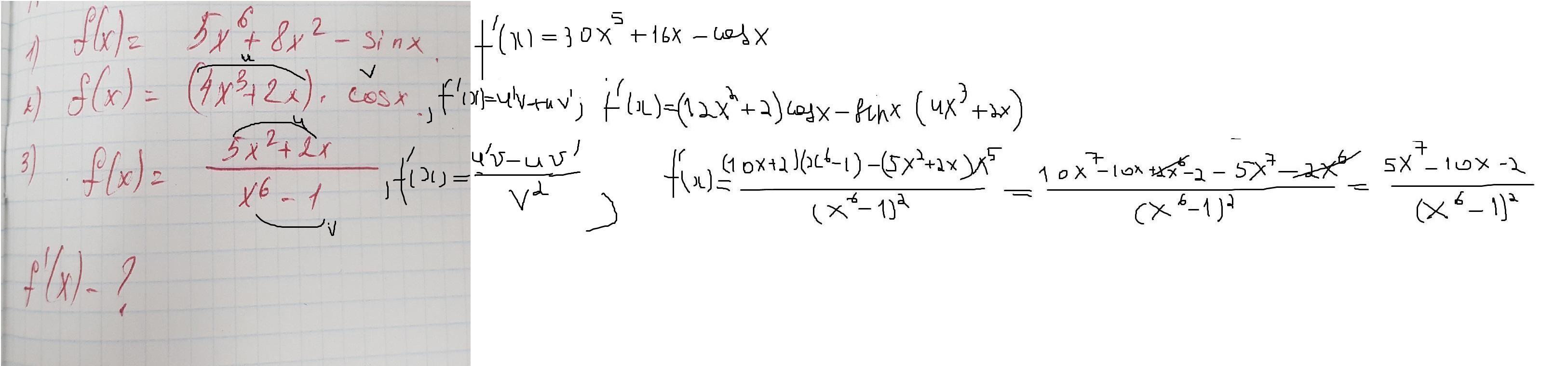 3)((10x+2)(x⁶-1)-6x⁵(5x²+2x))/(x⁶-1)²=(10x⁷-10x+2x⁶-2-30x⁷-12x⁶)/(x⁶-1)²=