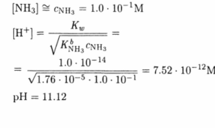 Степень диссоциации аммиака в 1.0*10-1 M водном растворе меньше 5% (по табличным данным h= 1.3%).