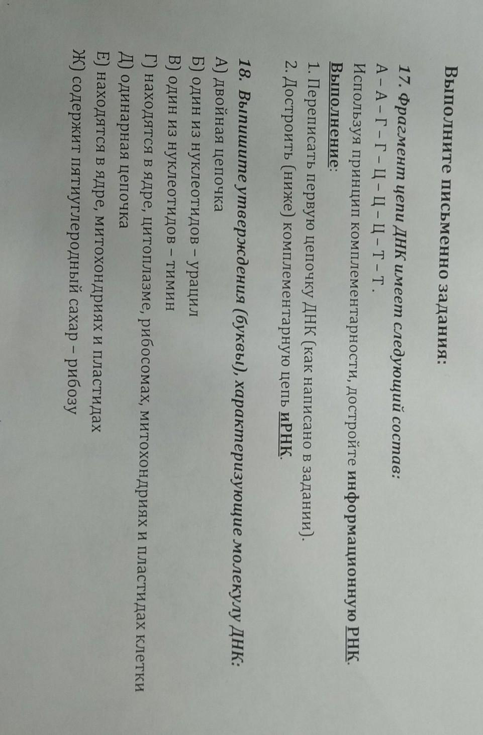 Помогите пожалуйста СРОЧНО, В 18 задании есть ещк буквы З) является самой крупной молекулой в живой клетке И) содержит пятиуглеродный сахар- дезоксирибозу