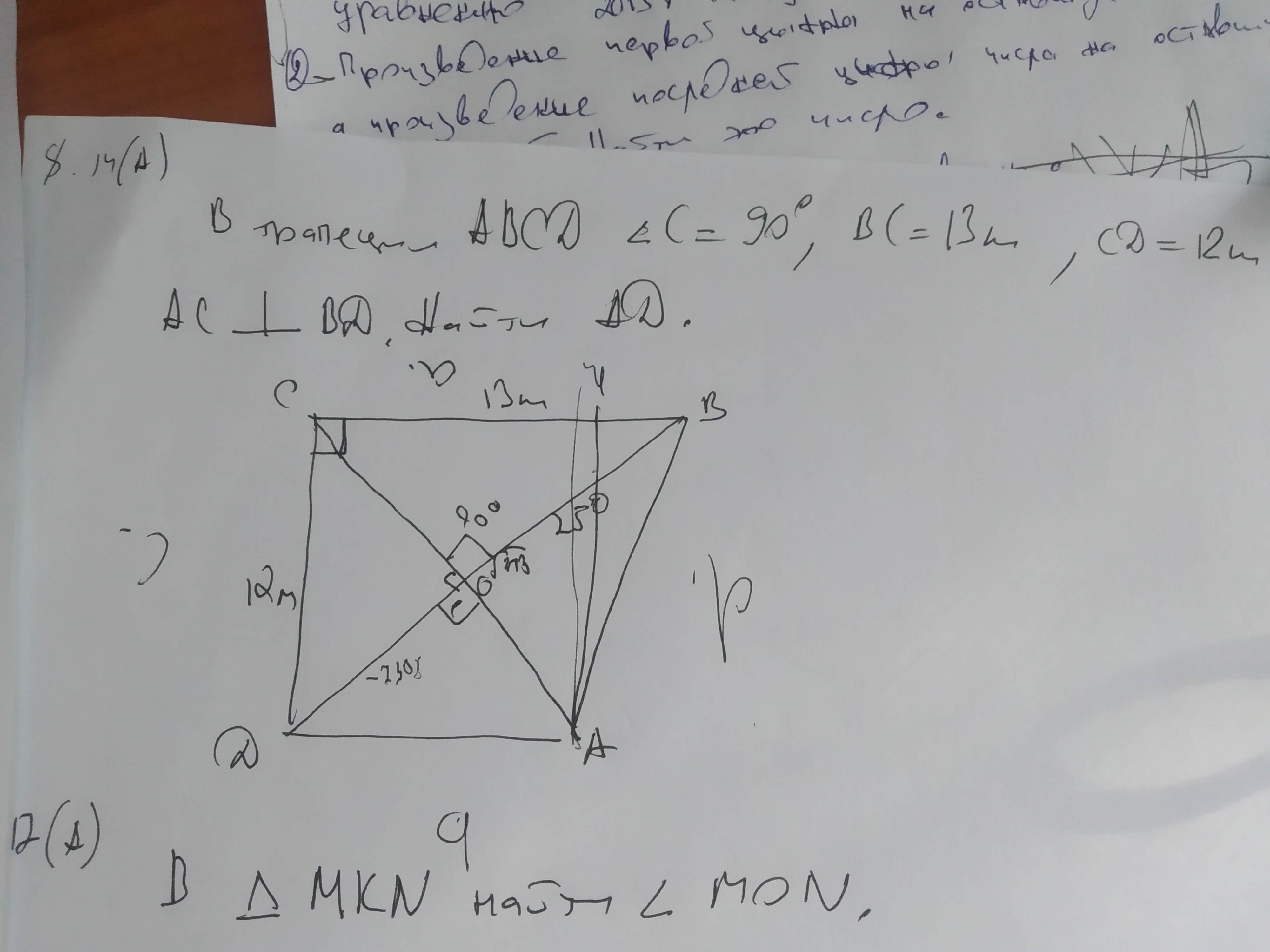 AD/CD = CD/BC <=> AD =12^2/13 =144/13 ~11,08