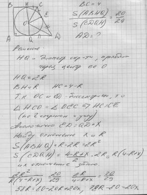 2)Найдите наибольшее основание трапеции AD, если меньшее основание BC=4, и прямая HQ делит площадь трапеции в отношении 29:20,то есть Площадь ABHQ: Площадь DCHQ= 20:29.